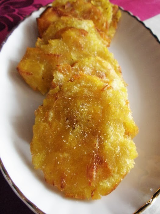 Ahora seguimos con las opciones elaboradas con frutas, el blog Principiando en la Cocina no enseña a hacer patacones, es plátano macho o verde frito.