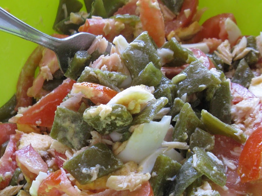 Es una receta muy especial para mí porque tengo muchos recuerdos familiares "sobre todo de verano" alrededor de ella, os dejo el enlace y veis como siempre se ha hecho en mi casa esta completa ensalada de vainas con tomate, huevo cocido y atún, todo en el blog de "EL RINCÓN DE CASA EL CAMINERO"