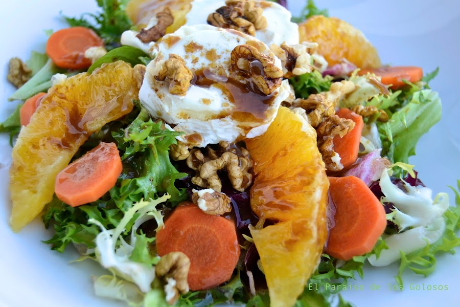 Ensalada templada de zanahora, naranja y queso