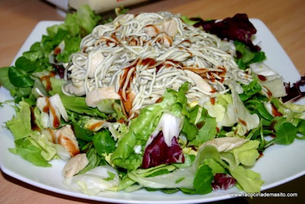 Seguimos con otra ensalada templada, al igual que la anterior también nos sirve como plato único, nos explica como formó esta rica ensalada pillando lo que había por la nevera, es que es lo bueno que tienen las ensaladas que admiten de todo. Toda la elaboración, vídeo y explicación con fotografías lo tenemos en el blog de "LA COCINA DE MASITO"