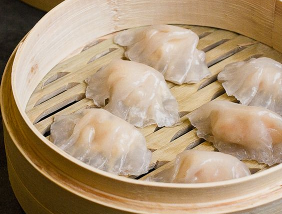 Ha Gao: relleno de gambas y cocinado al vapor.