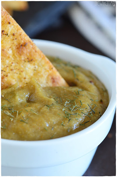 Este Dip de berenjenas es bastante similar al hummus de garbanzos (receta aquí) y es una receta de la cocina árabe típica y tradicional. Su significado es "coqueto y vicioso" y describe perfectamente esta crema qué acompañada de unos nachos, en este caso picantes, es irresistible