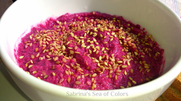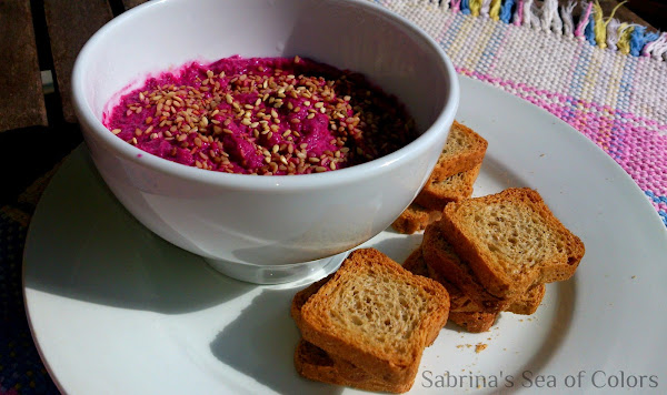 tostadas integrales para acompañarDip de remolacha y sésamo. Preparación