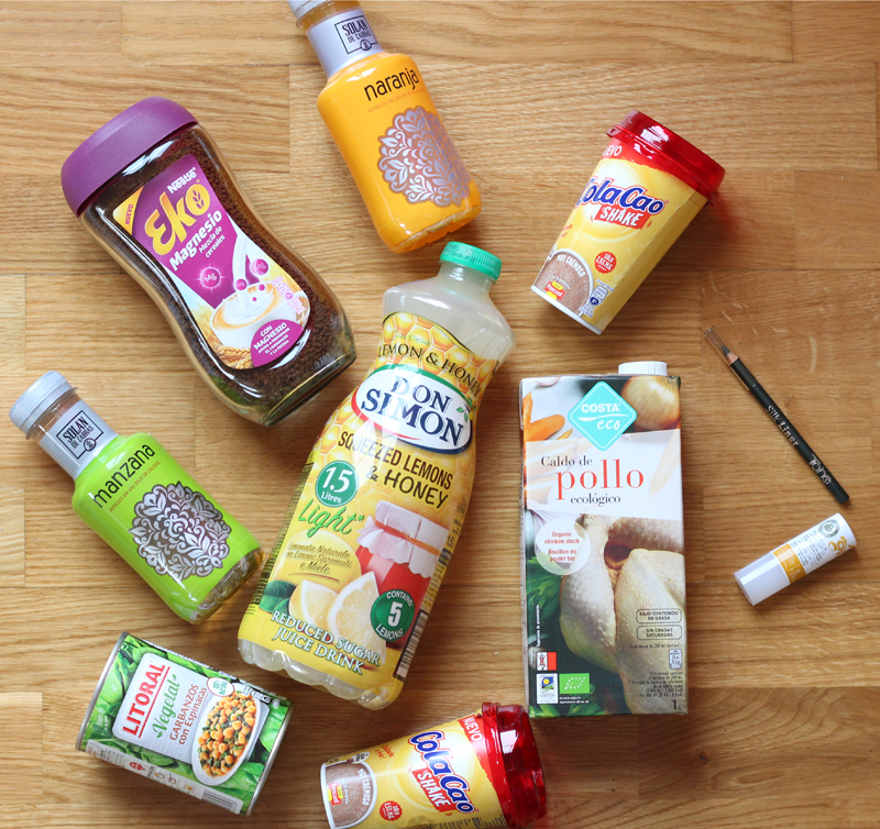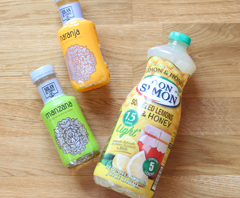 Empiezo con la parte de refrescos de la caja, que esta vez se compone de dos zumos de Solan de Cabras y una botella de litro y medio de limonada con miel ligth de Don Simon.