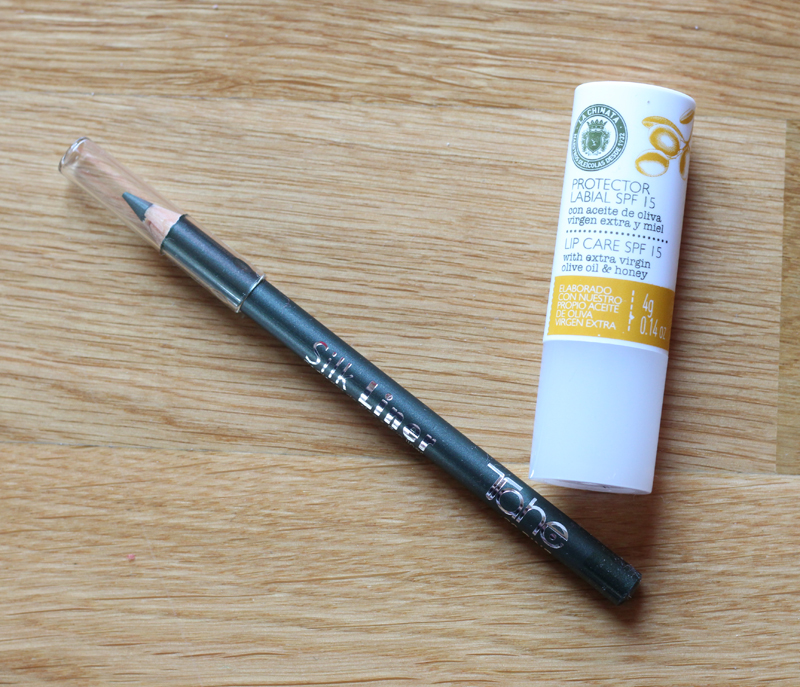 Y ya por último, como siempre dejo para el final la parte "beauty" de la caja y en esta ocasión tenemos dos productos: un lápiz de ojos de Tahe y el protector labial SPF15 de La Chinata.