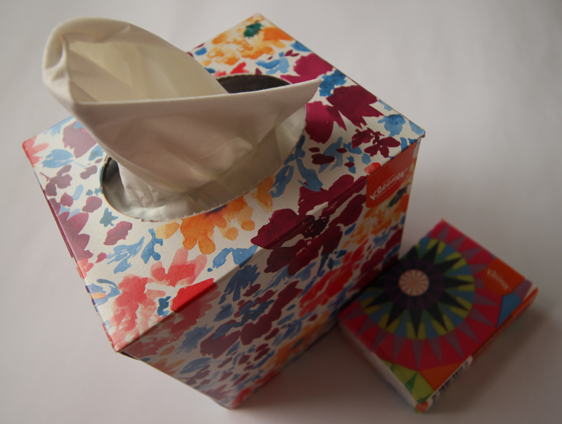 Ya pasamos a la parte de belleza y hogar, y en este caso, la famosa marca Kleenex, nos manda el envase compacto de pañuelos de papel, que yo siempre llevo en el bolso y la caja para tener en el tocador. Los dos con unos diseños muy alegres y coloridos.