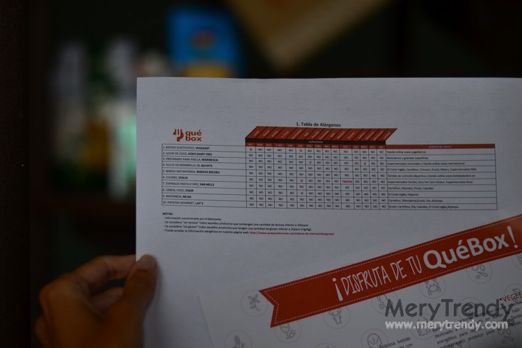 Además de una descripción de cada producto, la caja también incluye un informe con la Tabla de Alérgenos (para saber si el artículo en cuestión lleva leche, huevo, gluten, frutos secos, cacahuetes, soja, apio, mostaza, sésamo, sulfitos, altramuces, lactosa, etc.) y el listado con los puntos de venta, como veis en la siguiente imagen.