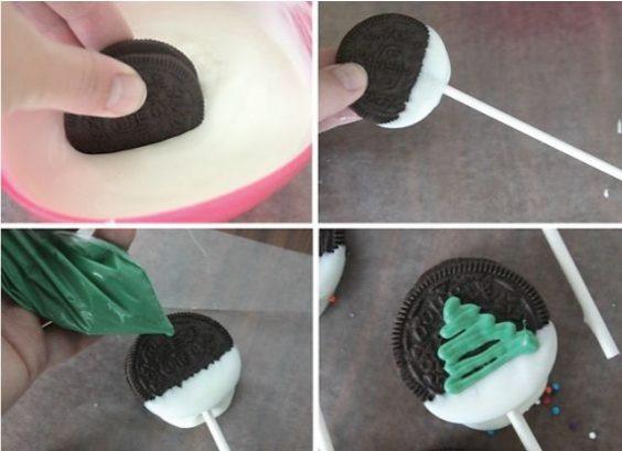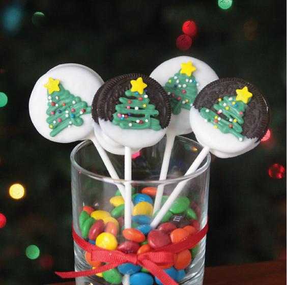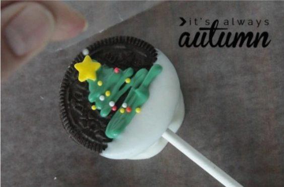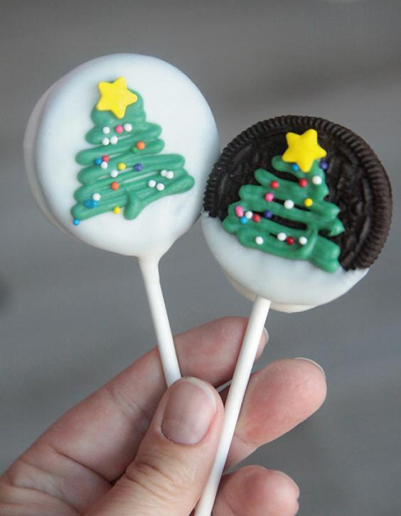 Podés colocar estos Oreo pops navideños en la mesa de dulces, decorados con un moño de cinta, también pueden ser un hermoso y original souvenir para los invitados a la cena navideña, envolviéndolos con una bolsita de celofán y un lindo moño, o un presente para amigos.