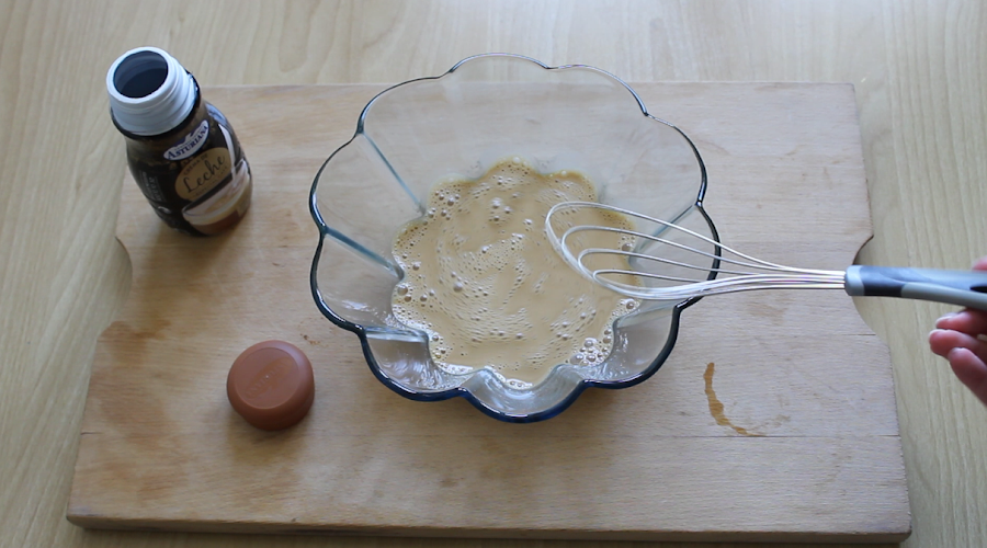 1. Paso: Verter la mezcla preparada para flan en un bol, añadir 125 ml de café y 200 ml de crema de leche para café Central Lechera Asturiana, (ésta potenciará el sabor del café) y remover hasta conseguir una crema sin grumos.