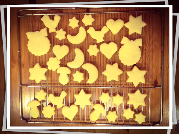 Cuando ha pasado ya esa hora, y mientras que precalentamos el horno unos 10 minutos a 180º C con calor arriba y abajo, echamos un poco de harina sobre la encimera y extendemos con ayuda de un rodillo nuestra masa hasta dejarla en un grosor de 3 o 4 milímetros. Aquí es donde los peques vuelven a entrar en acción, ya que es el momento de utilizar nuestros moldes cortadores con formas navideñas: estrellas, corazones, pajaritos, setas, lunas... ¡no nos falta de nada!