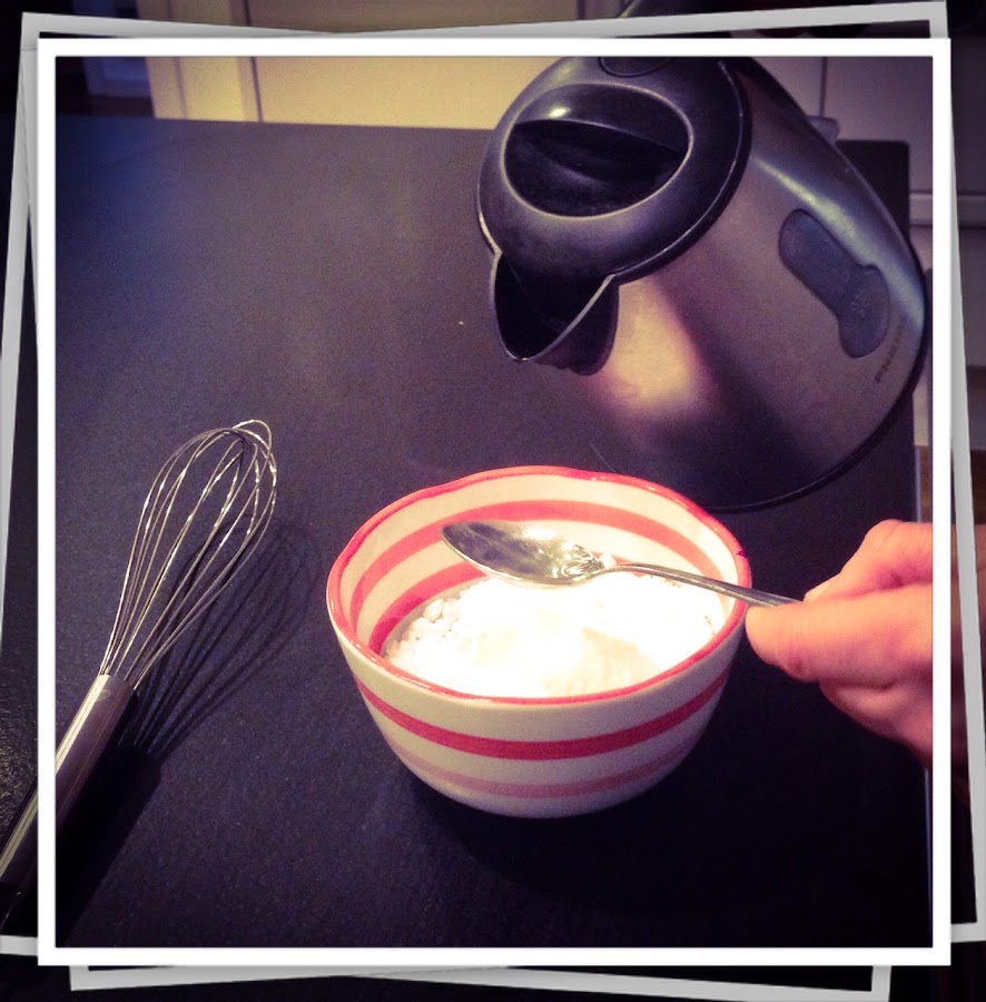 - 3 cucharadas de zumo de limón, o de ron, o de sirope de fresa, o de agua (Raquel escoge siempre agua, pero dice que "cada uno a su gusto")