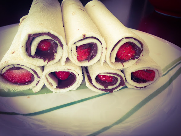 En esta ocasión, nos sorprende con unos rollitos de chocolate y fresas muy fáciles de preparar - ella encontró la receta en Internet y le pareció tan sencilla que no se pudo resistir a probarla para nosotr@s-. Y no fue la única a la que le costó resistirse... al parecer, desaparecen de la mesa casi más rápido de lo que se preparan, que es mucho decir ;)