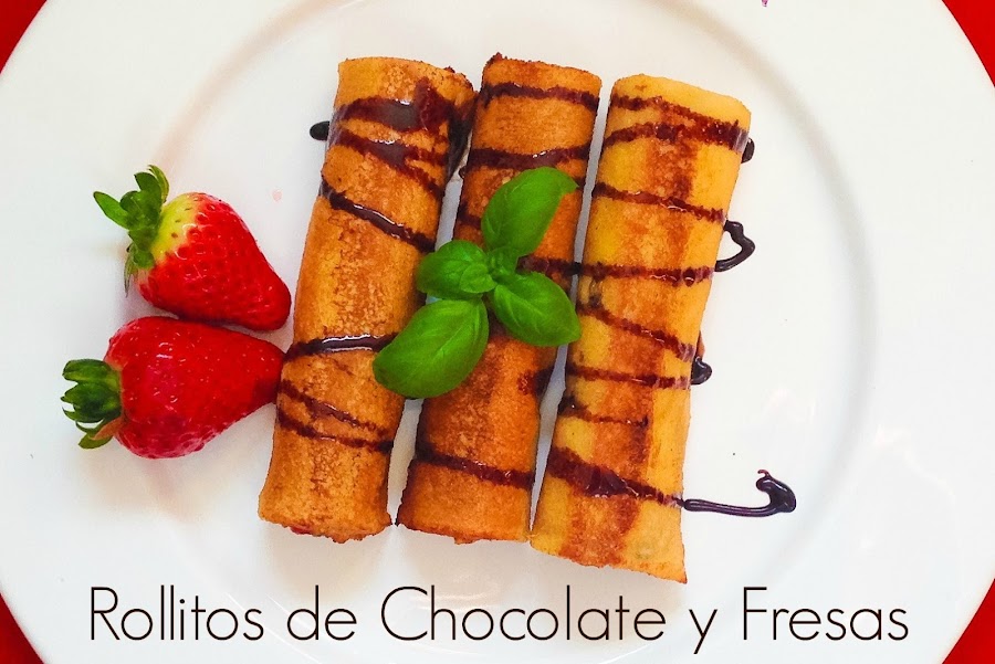 Lo primero de todo, lavamos las fresas y las cortamos en trozos pequeños. Después, batimos el huevo y le añadimos un chorrito de leche, más una o dos cucharadas de azúcar y lo revolvemos todo. Por último, vertemos un chorro de aceite de oliva en la sartén y lo dejamos en el fuego a baja temperatura para que se vaya calentando mientras vamos preparando nuestros rollitos.