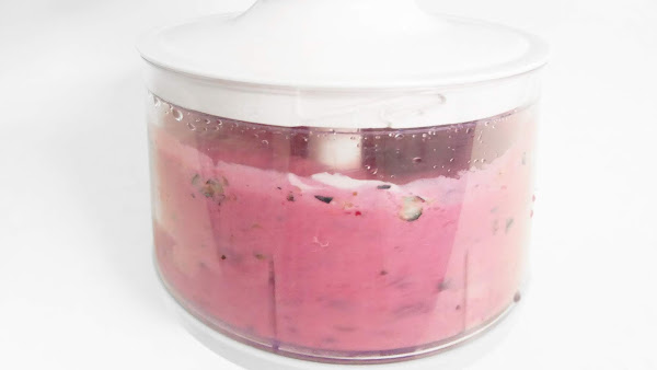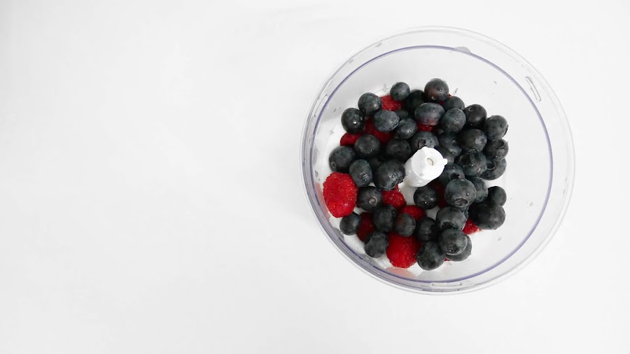 Introduce el yogur y los frutos rojos en la batidora y bátelo hasta que quede una textura casi líquida.