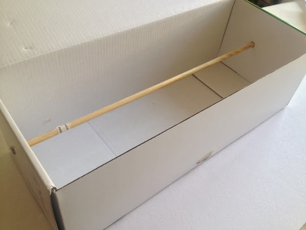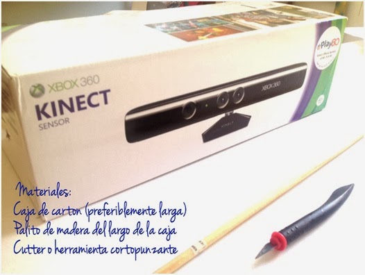 En este caso yo he utilizado una caja de una consola que tenía guardada previamente (como todas las cajas que llegan a esta casa) y un palito que nos quedó de un proyecto de mi hijo para el colegio.