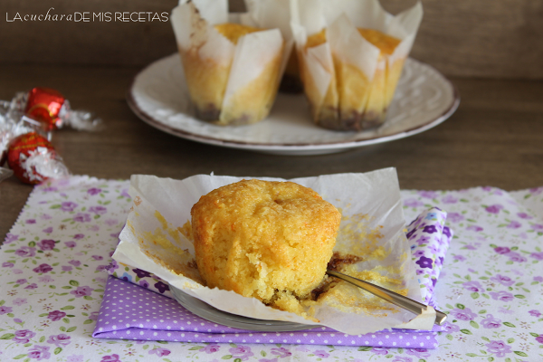 Hornea a 180º con calor sólo por abajo (pero eso depende de cada horno) durante 15-20 minutos, hasta los veas subir y el palillo salga limpio por el centro de tus muffins.