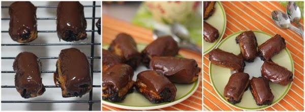Untamos cada una de las napolitanas con el chocolate fundido y las pasamos de nuevo a la rejilla hasta que endurezca el chocolate. Y este es el resultado...