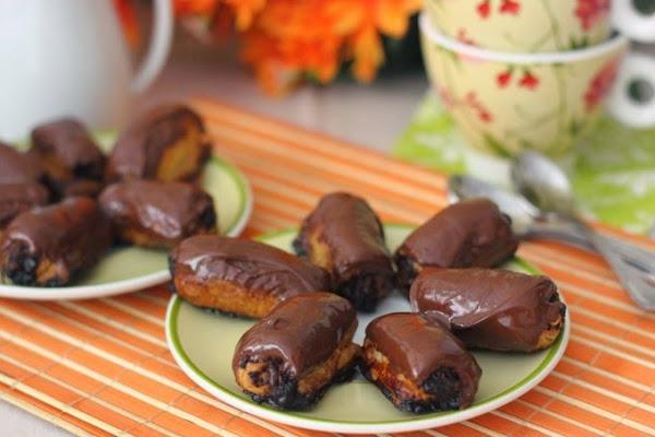 Sacamos del horno, los colocamos sobre una rejilla y fundimos el chocolate restante en el microondas.