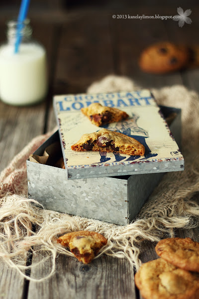 La receta es del blog Kanela y Limón, es que me encantan sus recetas y sus fotos son espectaculares. Para preparar estas ricas cookies necesitamos: