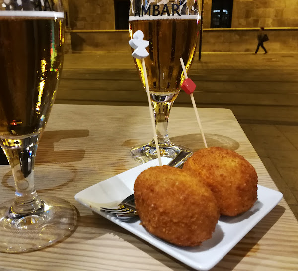 Como ya os podéis imaginar, su especialidad son los champiñones. Montado como si fuera una pequeña hamburguesa o coronado por una gambita, por 1.60€ nos encontramos con 2 o 3 deliciosos champiñones. Muy buenos, y acompañados por una cerveza, todo un placer para el paladar.