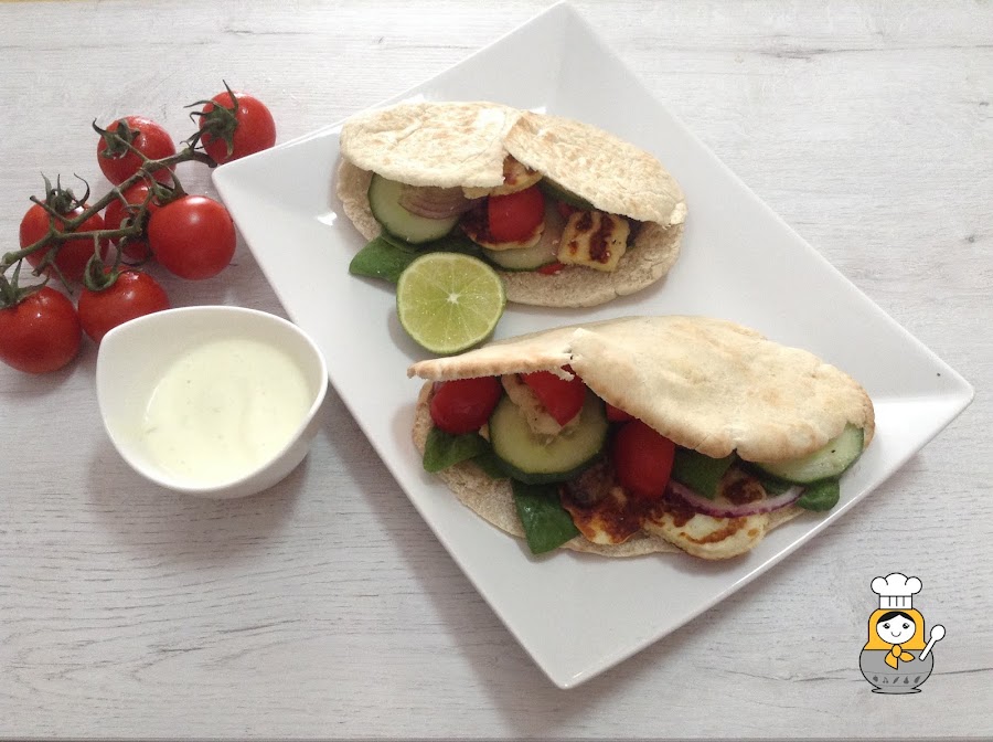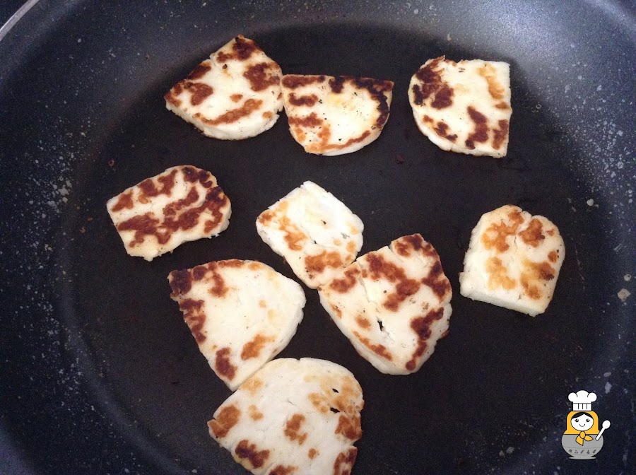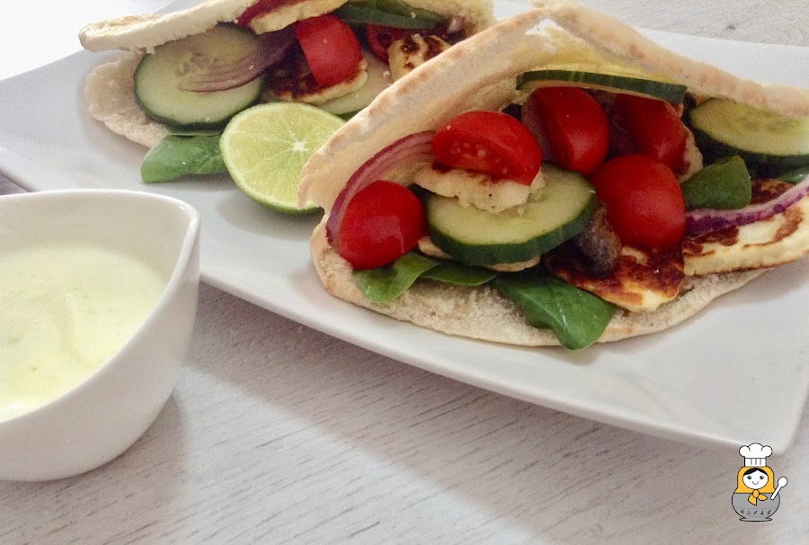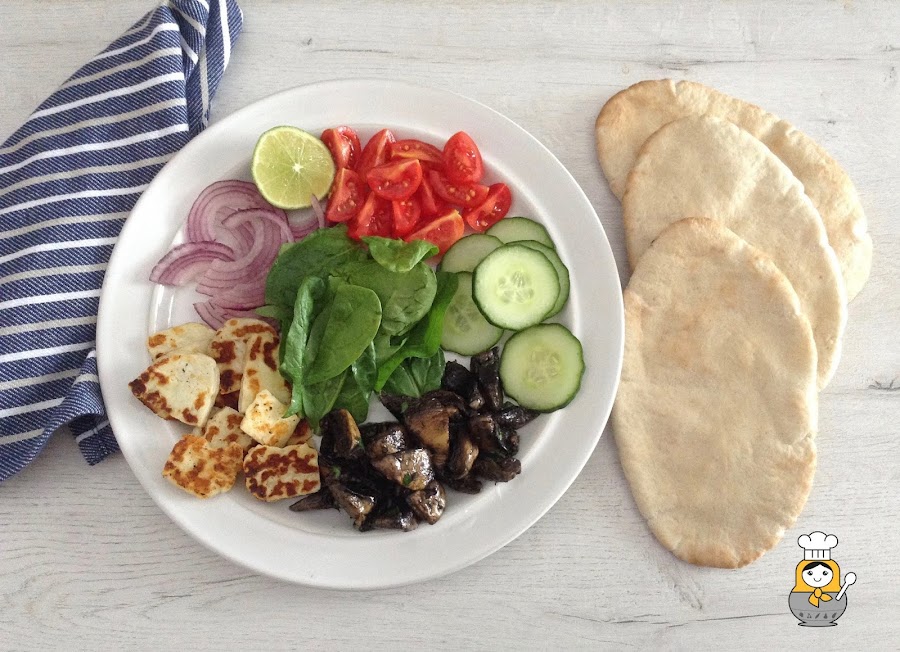 El Halloumi es tradicional de Chipre y se trata de un queso fresco preparado con leche de vaca, oveja y cabra. Tiene un sabor bastante salado pero lo mejor es que se puede hacer a la plancha o al horno y está de miedo. Da un toque espectacular a ensaladas o platos vegetales como este döner que nos hemos marcado.