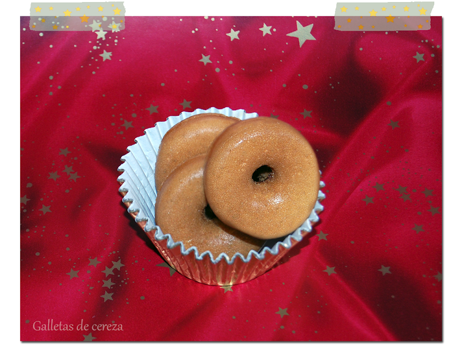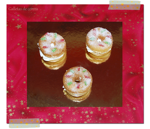 Cuando saquemos los donettes les damos la vuelta (estarán más bonitos por abajo) y los dejamos enfriar en una rejilla. Después los abrimos, untamos la parte de arriba con mantequilla, colocamos la fruta escarchada y espolvoreamos con azúcar.