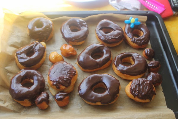 con cuidado de no desinflar la masa hasta la sartén y freír sólo unos segundos por cada lado , hasta que doren, al fritura deberá ser rápida eh?? Escurrir con papel de cocina y glasear o comer así