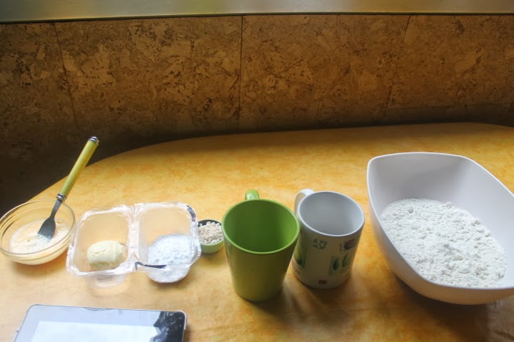 2- Con un pizco de harina en las manos, formar una bola , hacer unos cortes y dejar levar tapado en un lugar cálido hasta que doble volumen, 1 a 1,30 horas.