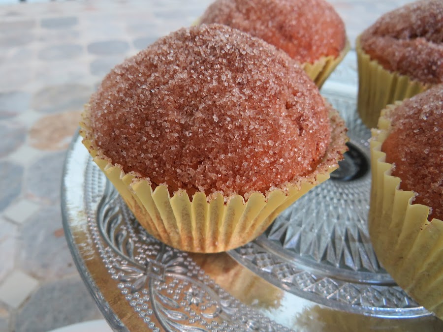 Además, como toque final dan dos opciones: esta que veis en la imagen de azúcar granulado mezclado con canela, o bien, hacerle una "glasa muerta", es decir, hecha con agua, azúcar y aromas (por ejemplo, vainilla y zumo de limón) con la que cubriríamos el "copete" de la magdalena.