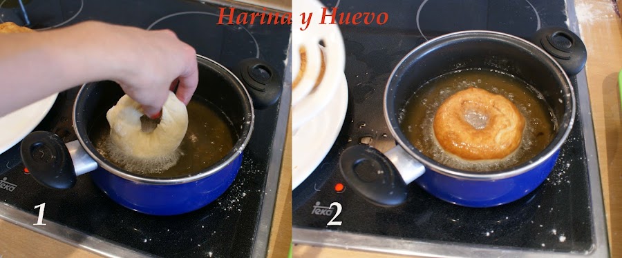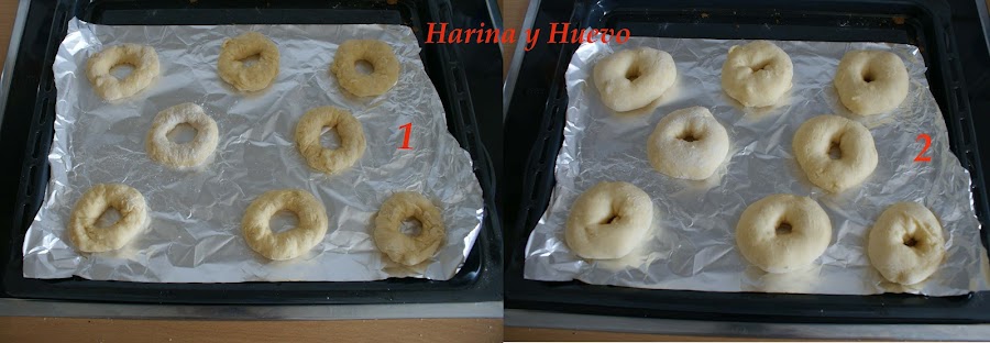 Estas...¿cómo llamarlas?...rosquillas las dejamos en una bandeja reposando una media hora o una hora para que vuelvan a crecer y el donut salga esponjoso.