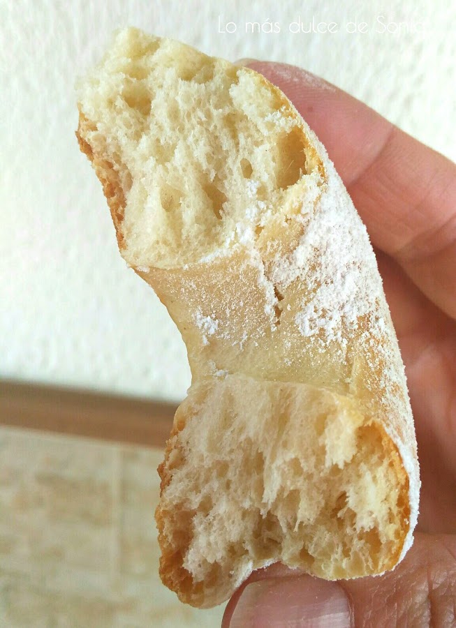 Sacamos del horno y aún tibias, pincelamos con mantequilla derretida y luego espolvoreamos con azúcar y canela.