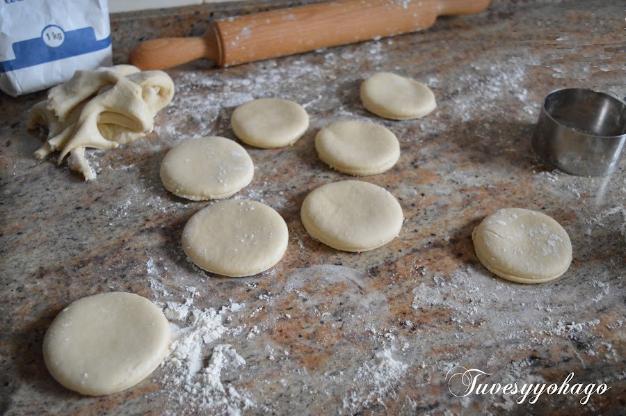 Lo de estirar la masa lo hizo mami (sobre una superficie enharinada). Blanca, mi hija mayor se encargó de darle forma a los donuts con el cortador grande.