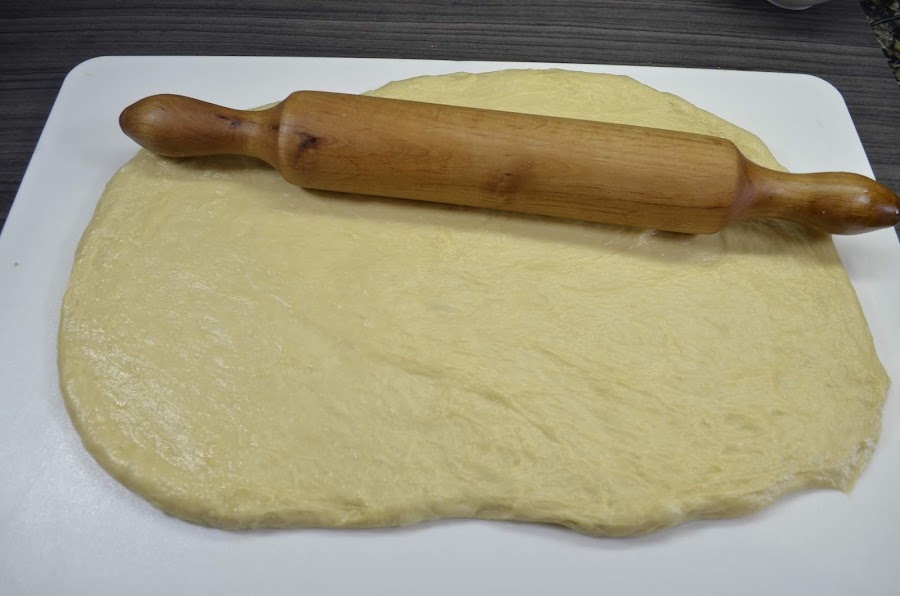 Ponemos más harina o aceite en la superficie y la estiramos con un rodillo.