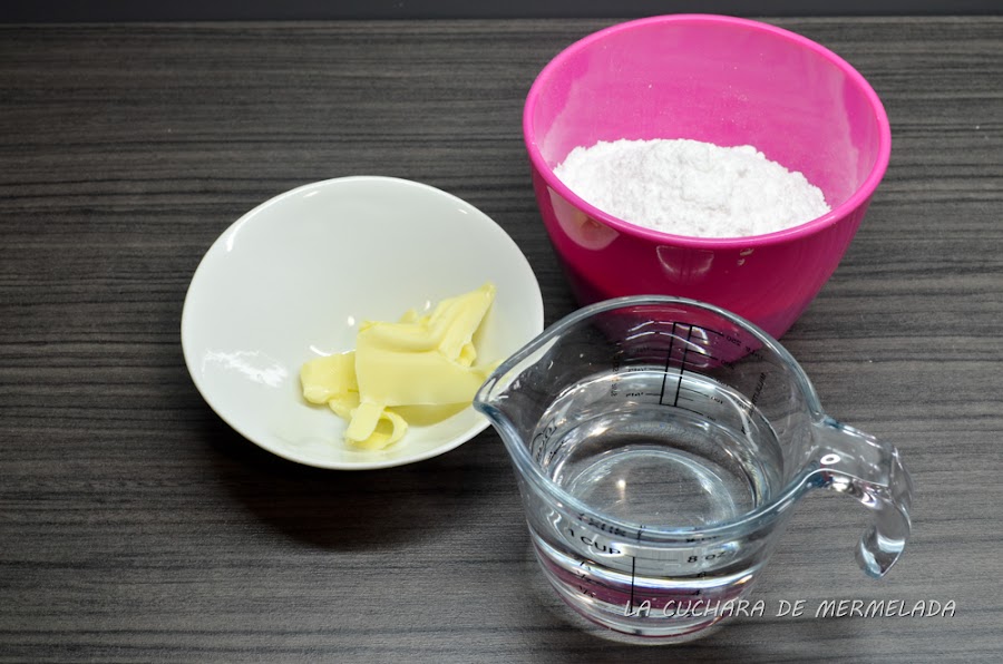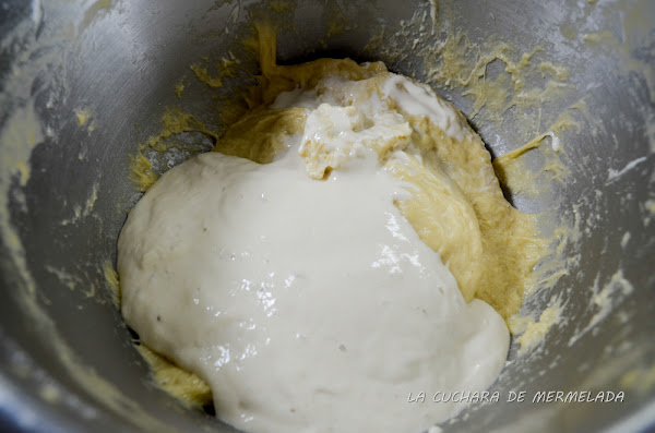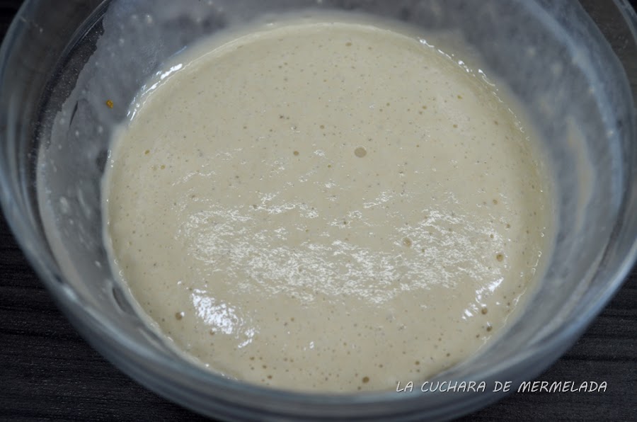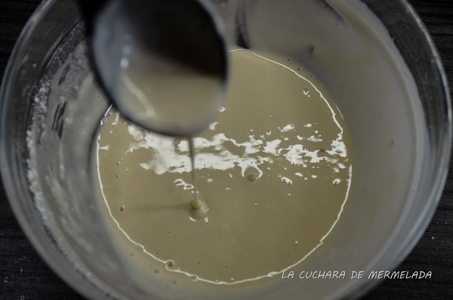 Truco: los líquidos tienen que estar templados porque si añades la mantequilla, y el agua está fría, se corta. Si pasa esto, lo calentamos un poquito y se remueve hasta que quede lisita de nuevo.