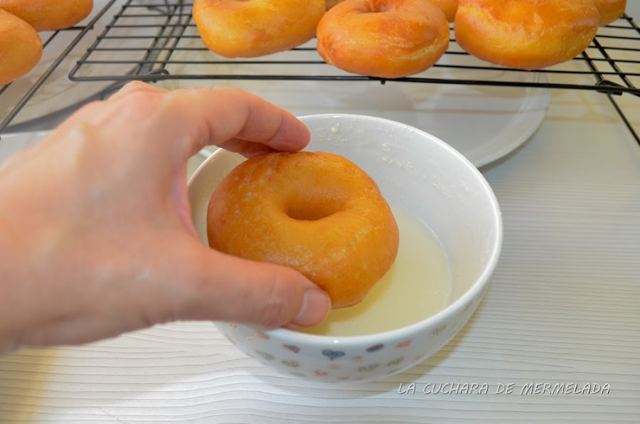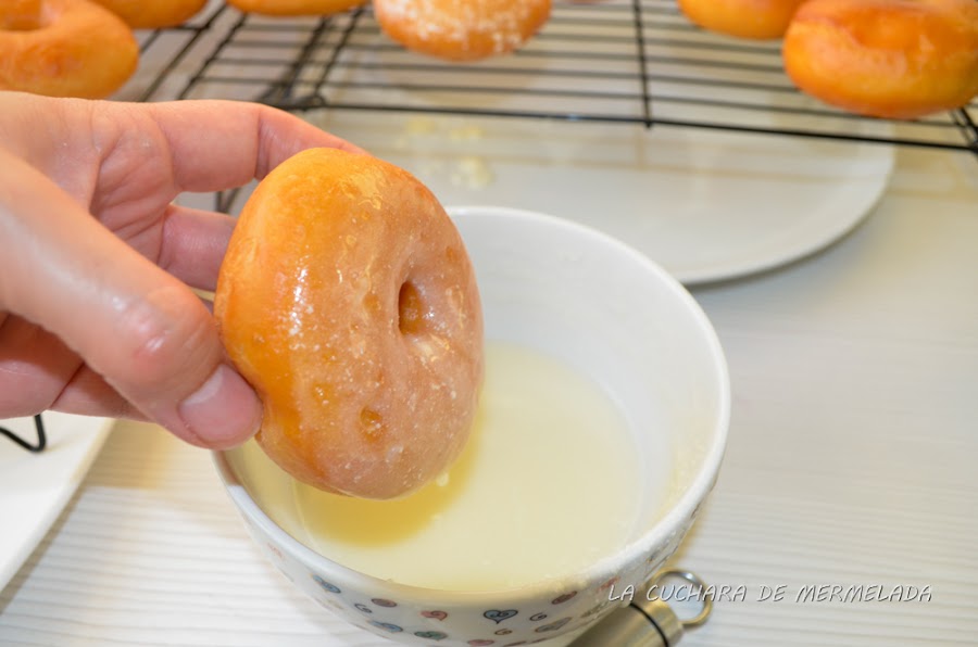 Esta cantidad sólo da para untarlos por una parte, que es suficiente para conseguir el sabor del donuts y así no añadimos más calorías, pero si queréis ponerle a todo el donuts podéis hacer más glasa.
