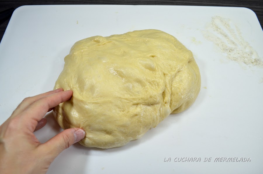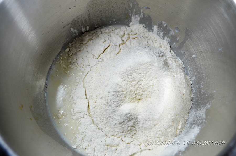 Si usamos amasadora, como es mi caso, ponemos primero la leche con la esencia de vainilla y luego añadimos la mezcla de harina y amasamos bien hasta que la masa quede bien lisa. Se tarda unos minutos pero es el secreto de que salgan tan ricos, ánimo!!!.