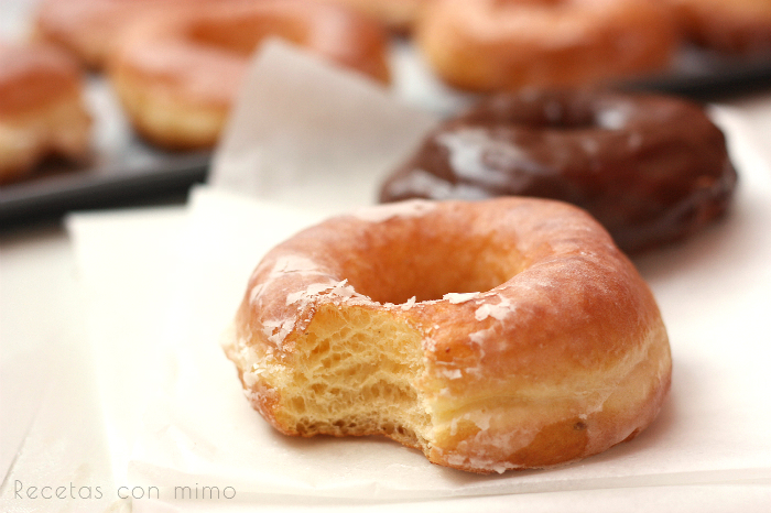 Para el glaseado añadimos un poquito de agua en el azúcar glass hasta conseguir una pasta homogénea. Introducimos cada donut dándole una capa de glaseado en ambas caras y dejamos escurrir sobre una rejilla de cocina. Una vez seco el glaseado podemos consumir como mas nos guste. A mi me salió una gran cantidad de donuts así que decidí congelar la mitad ya glaseados. Una vez descongelados estas increíbles, tiernos como el primer día así que os animo a hacerlo ya que la bollería casera no tiene la misma capacidad de conservación. En esta ocasión he optado por el glaseado clásico. Cuando propuse los donuts a mis amigas como receta para este proyecto lo único que si pedía era que fueran donuts fritos ya que quería hacer los clásicos. Mas adelante os traeré otras ideas para el glaseado y como no, probare recetas nuevas aun que esta me ha encantado.