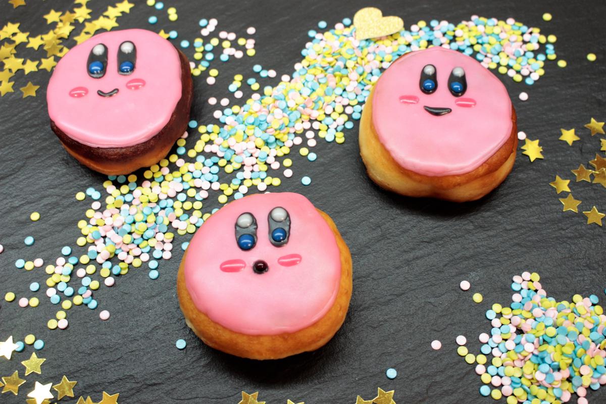 La decoración puede ser la que quieras, desde hacer los clásicos con un poquito de glasa al agua, o bañarlos en chocolate si te gustan los donuts bombón e incluso hacer las rosquillas de Homer Simpson coloreando la glasa de rosa y poniendo palitos de colores por encima. Si te decides por hacerlos sin el agujero central, puedes rellenarlos de crema pastelera o y decorar por encima como más te guste, por ejemplo te dejo la idea de los Donuts de Kirby que quedan monísimos! " class="wp-smiley" />" class="wp-smiley" />
