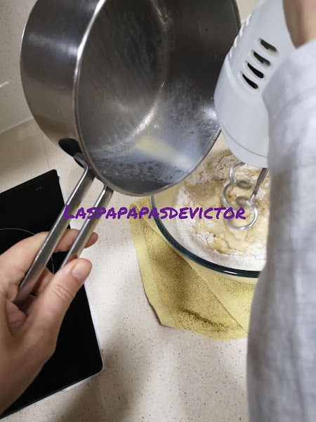 Lo mezclamos todo con la batidora de varillas y lo dejaremos que doble su volume. Una horita