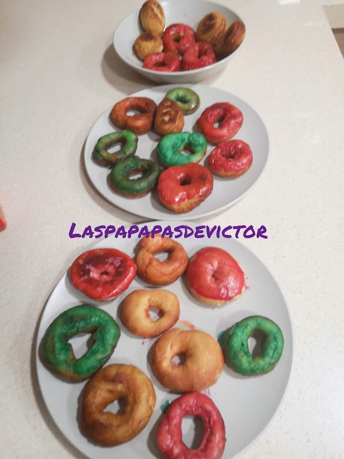 Están súper ricos y tampoco la verdad es tan difícil hacerlos y la masa se puede congelar o sino ya echa la forma de "O" la podéis congelar y así lo podéis sacar cuando queráis comer.