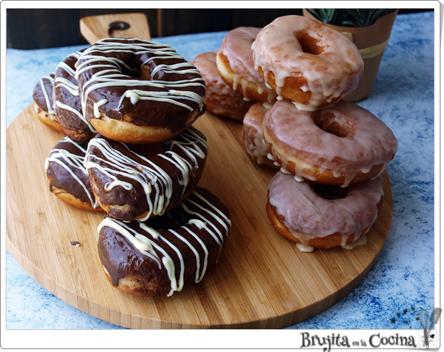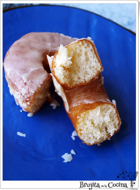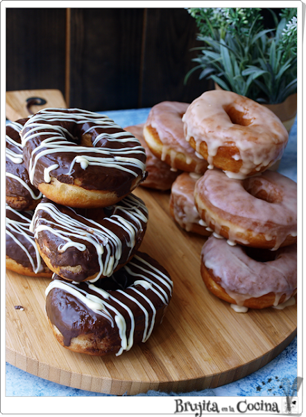 El proceso es un poco largo, lo reconozco, porque al ser una masa levada (que lleva tiempo para que actúe la levadura) y luego además van fritos pues no es una receta para todos los días, pero vamos de cara el finde darse un capricho tampoco está mal, verdad? Además una vez hechos los donuts les puedes envolver en papel film y congelar. Y cuando tenga un poco de pasión, te sacas uno y ya está.