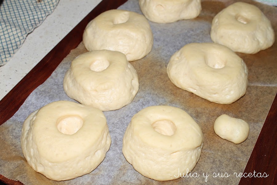 Los dejamos reposar sobre un papel vegetal tapados hasta que doblen su volumen 1-2 horas aproximadamente. ¿Veis que gorditos se han puesto? por eso os aconsejo que los hagáis mas pequeños que yo...
