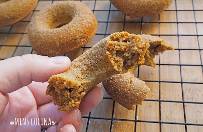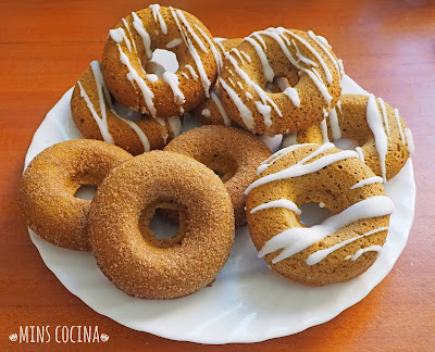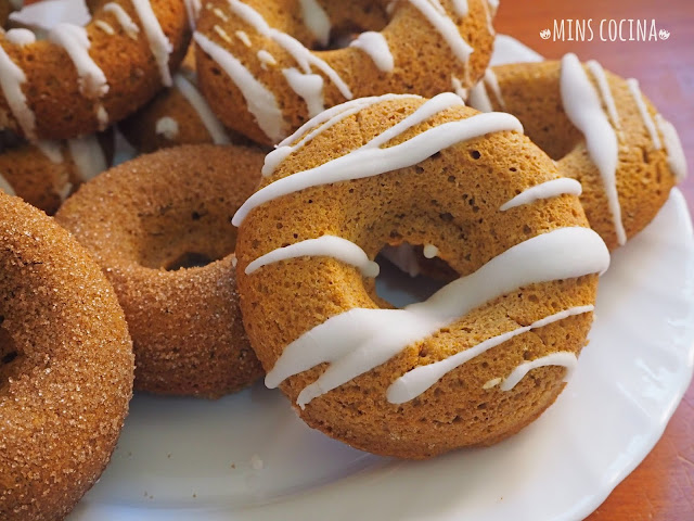 Feliz día de Todos Los Santos y feliz comienzo de Noviembre! Al igual que ayer y últimamente vuelvo con calabaza... y sí, puedo decir sin riesgo a equivocarme que estoy obsesionada con este ingrediente. Es que es maravilloso... maravilloso al igual que estos donuts que os traigo hoy. Y es que si hay algo rico, incluso más que la calabaza, es la calabaza especiada. En el blog ya tenéis varias recetas, pero la de hoy es sin duda una de mis favoritas. Estos donuts no pueden estar más buenos y encima son sanos e indulgentes. No lo buscaba cuando los preparé, pero resulta que así son: sin azúcar, veganos (sin huevo y sin leche/lactosa), poca grasa, mucha fibra... y de verdad, están taaan buenos! La consistencia es perfecta, la textura, el olor, el sabor... he de decirlo, de lo más rico que he preparado nunca. A ese punto llegan. Así que no lo dudéis porque encima son super fáciles y muy rápidos de preparar. Todo a un bol y de ahí al horno, y listos! Un dulce otoñal como no habéis probado nunca. MARAVILLOSOS!
