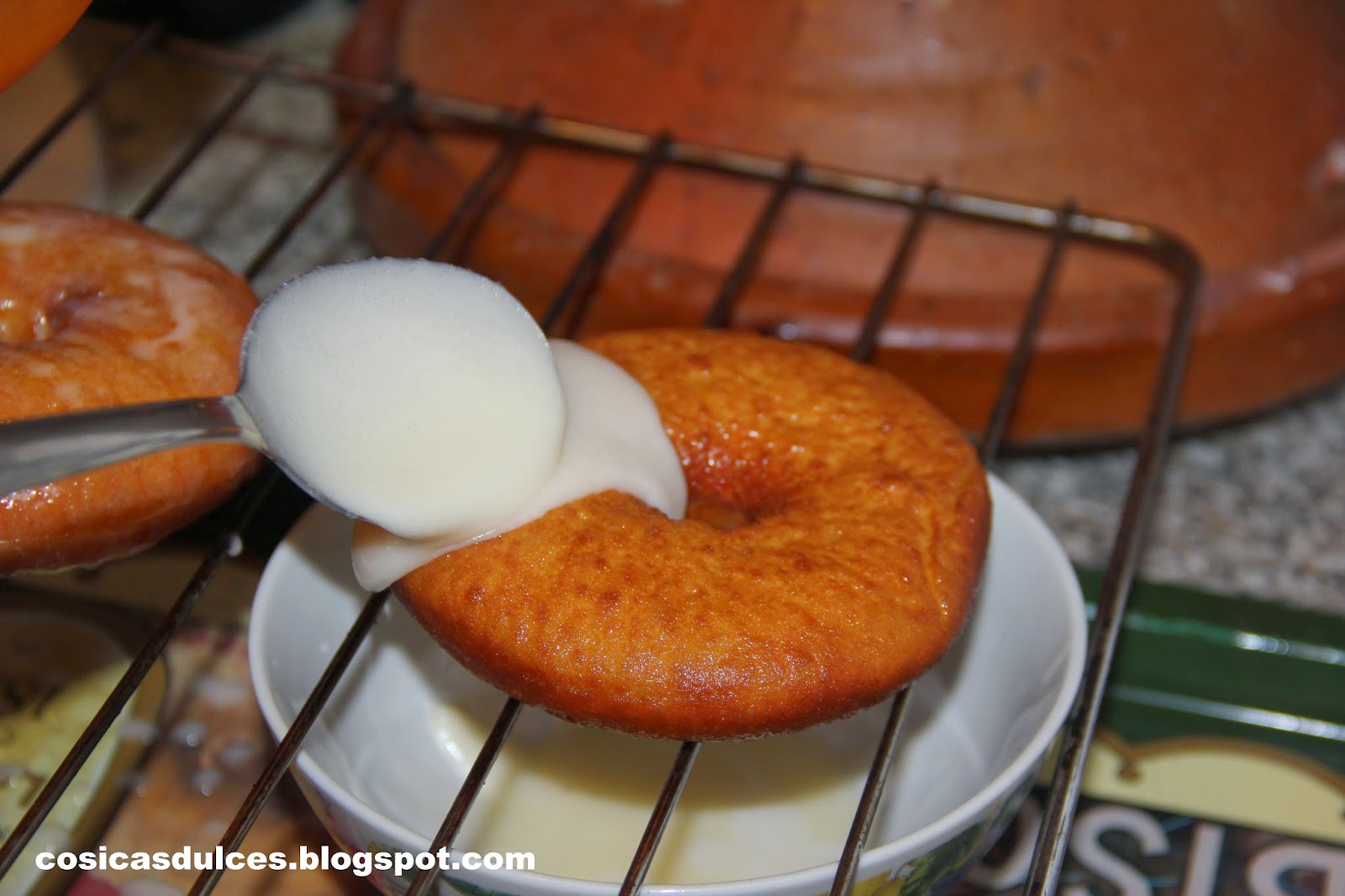 Una vez fritos y aún en caliente procedemos al glaseado. La glasa la realizaremos con 200 gramos de azúcar glas a la que iremos añadiendo nata (crema de leche) líquida hasta lograr una textura semilíquida.