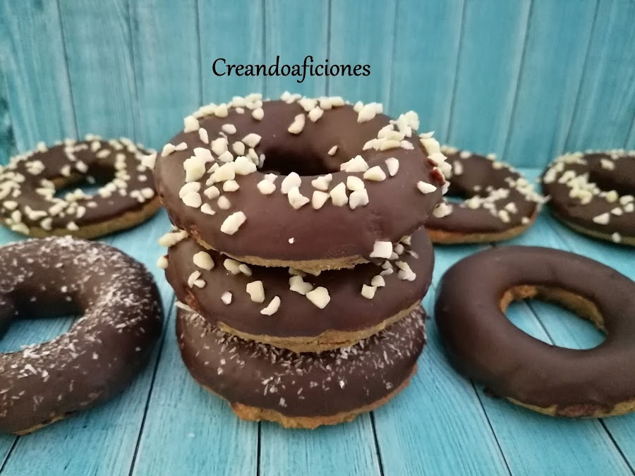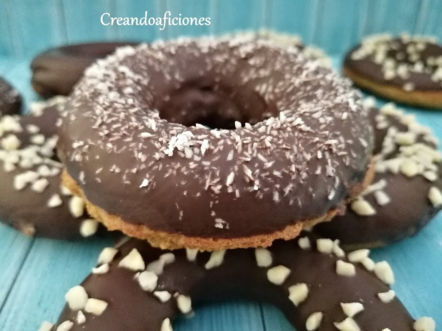 Metemos los donuts en el chocolate y echamos las almendras y el coco por encima. Para que el chocolate este duro meterlos en la nevera. También podéis espolvorear algunos con azúcar glass.Que disfrutéis!!!!!!!!!!!!!!!!!!!!!!!!!!!!!!!