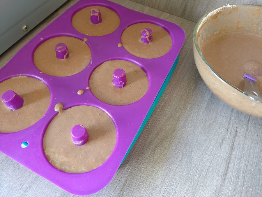 Untamos un poco de aceite de coco, o del que uséis, en unos moldes de silicona aptos para microondas.