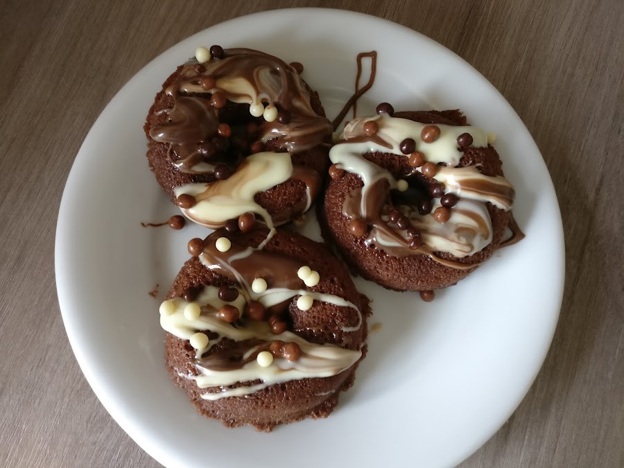 Decoramos como más os guste, en mi caso con un poco de crema proteica de cacao y avellana.