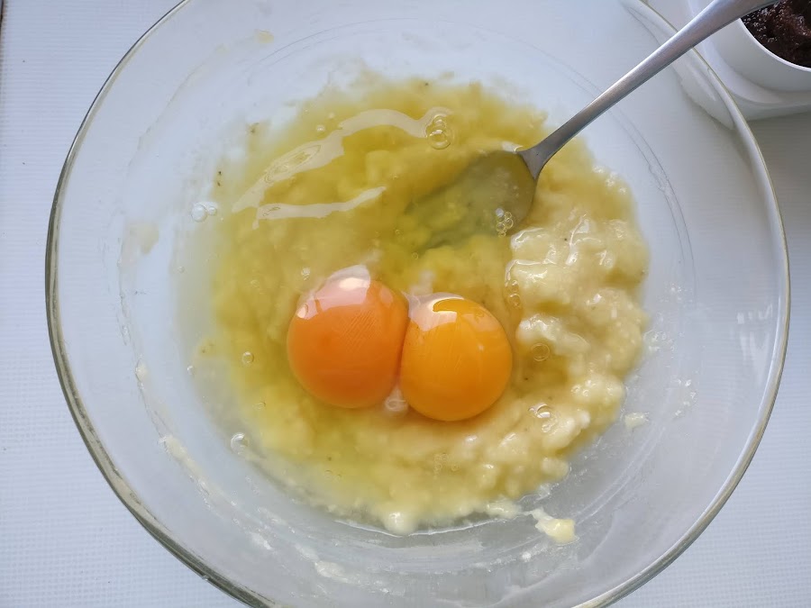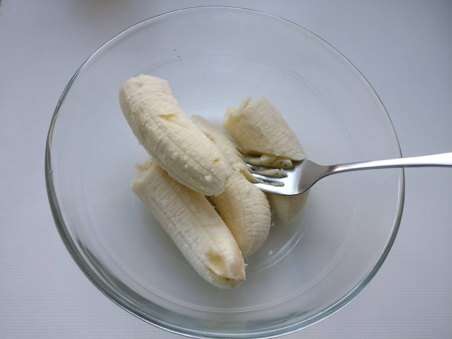 Lo primero que haremos será machacar los plátanos con un tenedor hasta crear una crema.