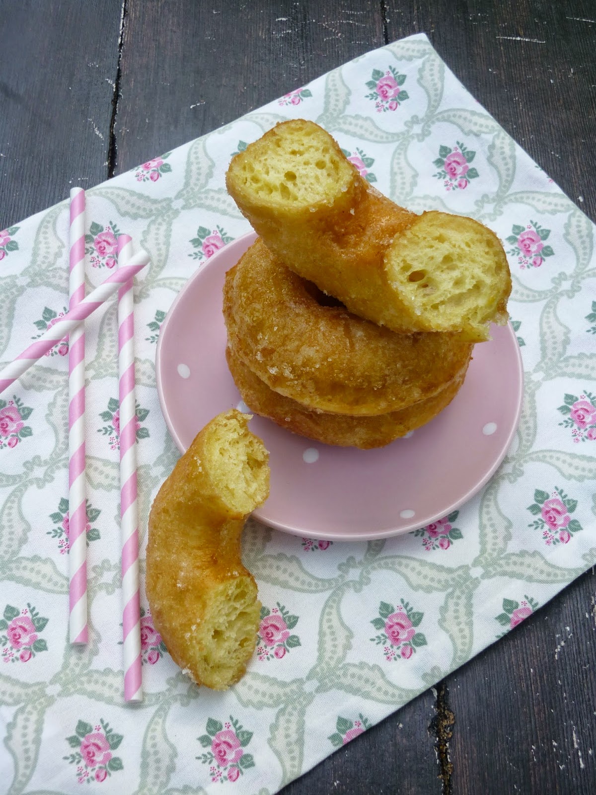 Éstes ya hace meses que los hice, poco después de ver las berlinas que publicó Sandeea en "La receta de la felicidad". De ahí el nombre de las berlinas convertidas en donuts.