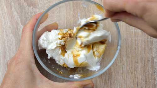 En un recipiente echamos el queso crema light. Puedes usar queso crema normal y también un poco de chocolate blanco si te gusta.Luego, añadimos la esencia de vainilla, la estevia al gusto (o cualquier otro endulzante) y un poco de canela en polvo. Mezclamos los ingredientes hasta obtener la crema espesa o frosting.